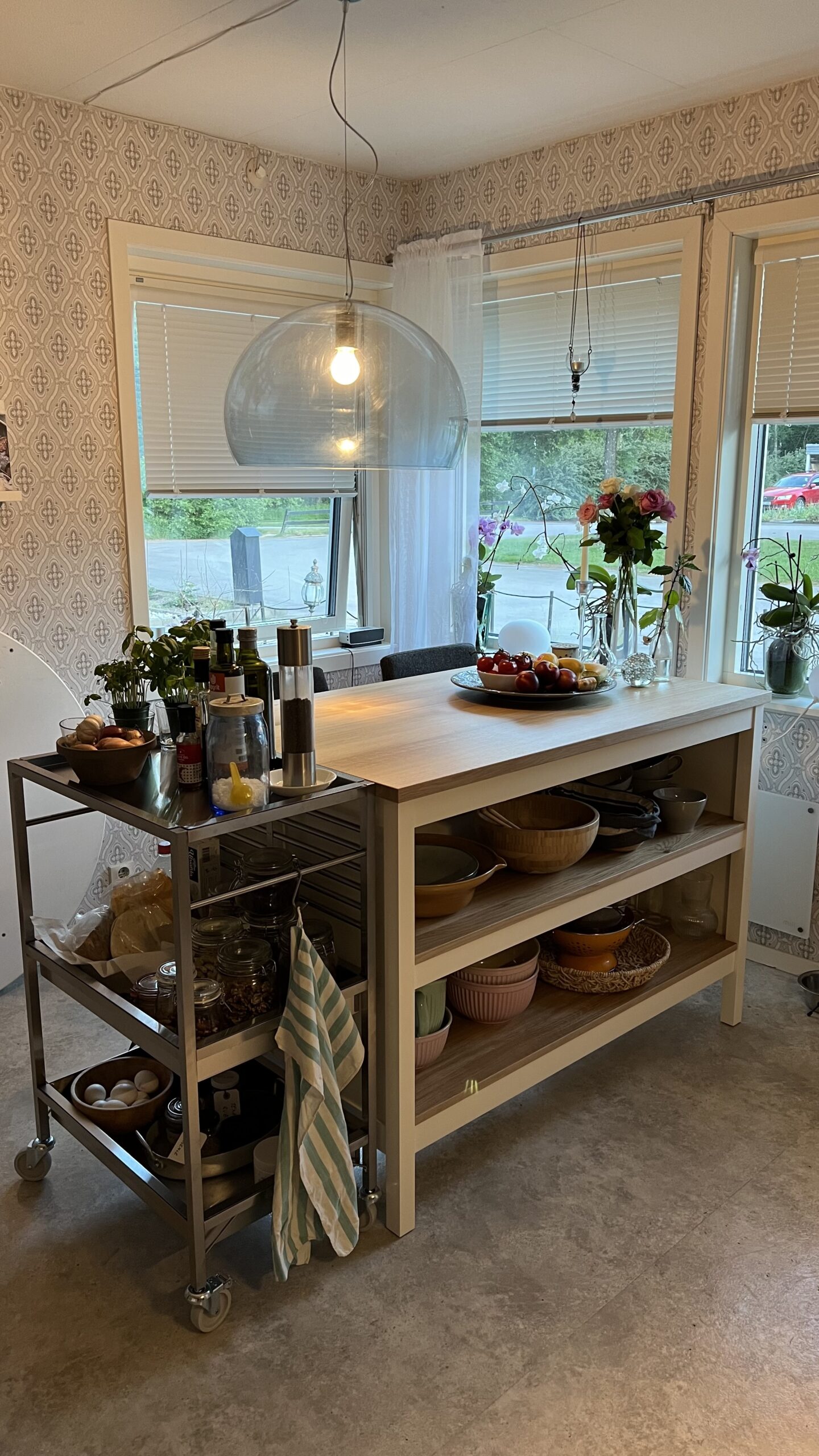 En liten serveringsvagn för ytterligare förvaring och ett par tjusiga barstolar fick såklart också följa med hem! Jag är så nöjd! Nu är i alla fall mitten av mitt kök fint!