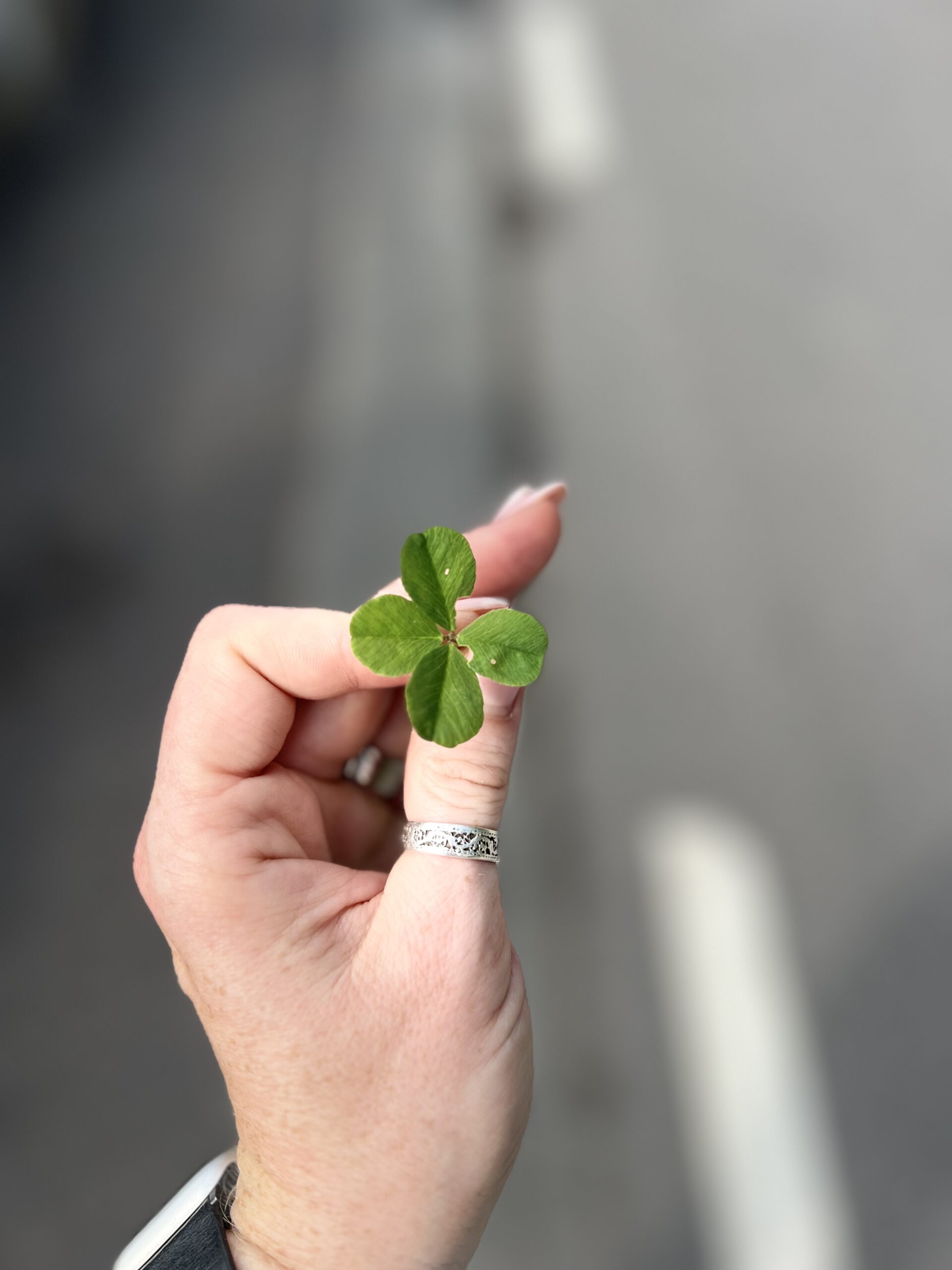 Årets första fyrklöver. Det är lite min grej att hitta fyrklöver. Har massor torkade hemma, i böcker, i telefonskalet, i en glasburk där jag samlat dem. Det är lycka!