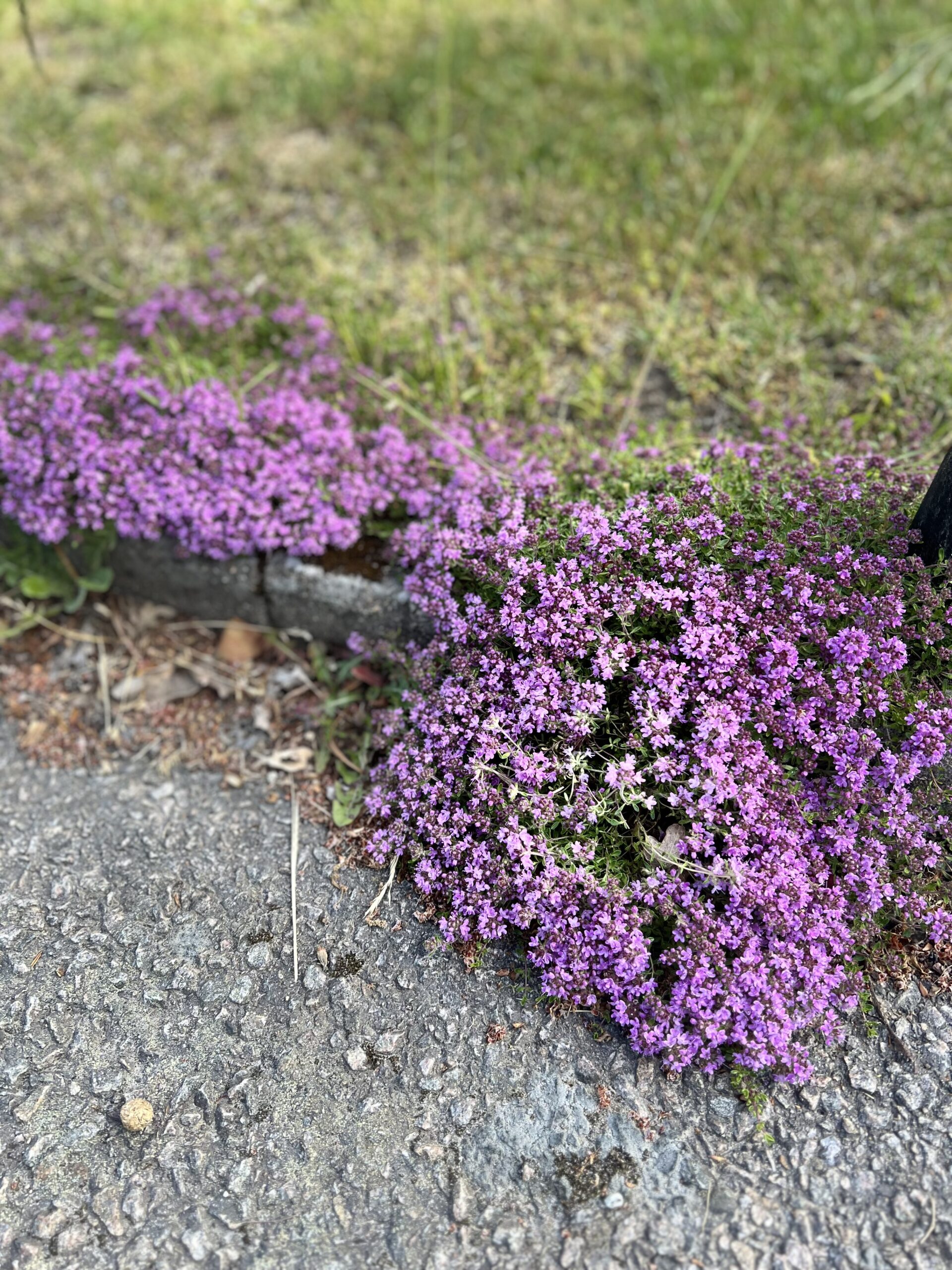 Min backtimjan som jag planterade för två år sen sprider sig längs kanten på gräsmattan! Jag älskar den! Både färgen, de små, små blommorna och doften gör mig lycklig!
