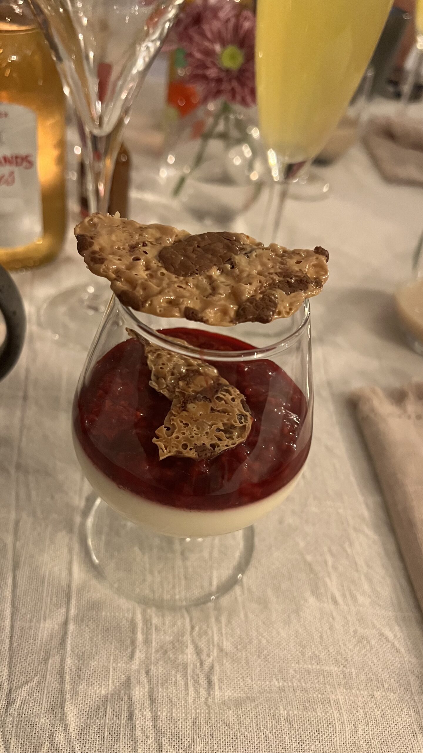 Madde och Ellen hade fixat en fantastisk pannacotta med hallonsås och dumleflarn!