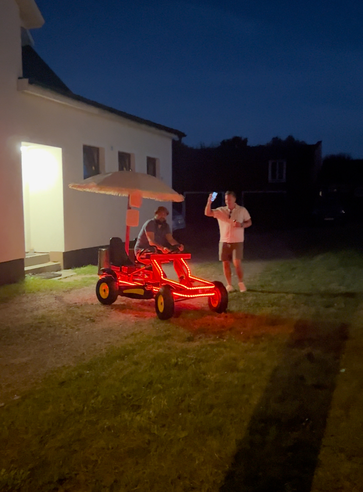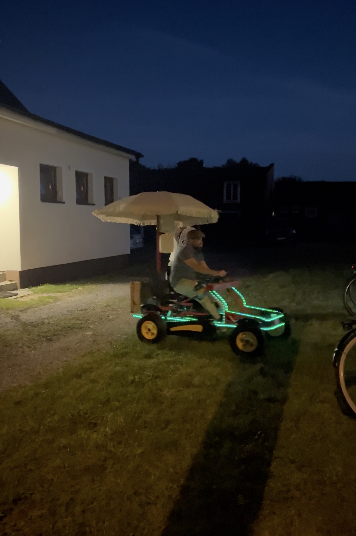 Vårt sällskap till dessert blev Natalie, David, Ellen och Madde! David hade byggt sig en cykelbil med högtalare och disco lights! Så jävla roligt!