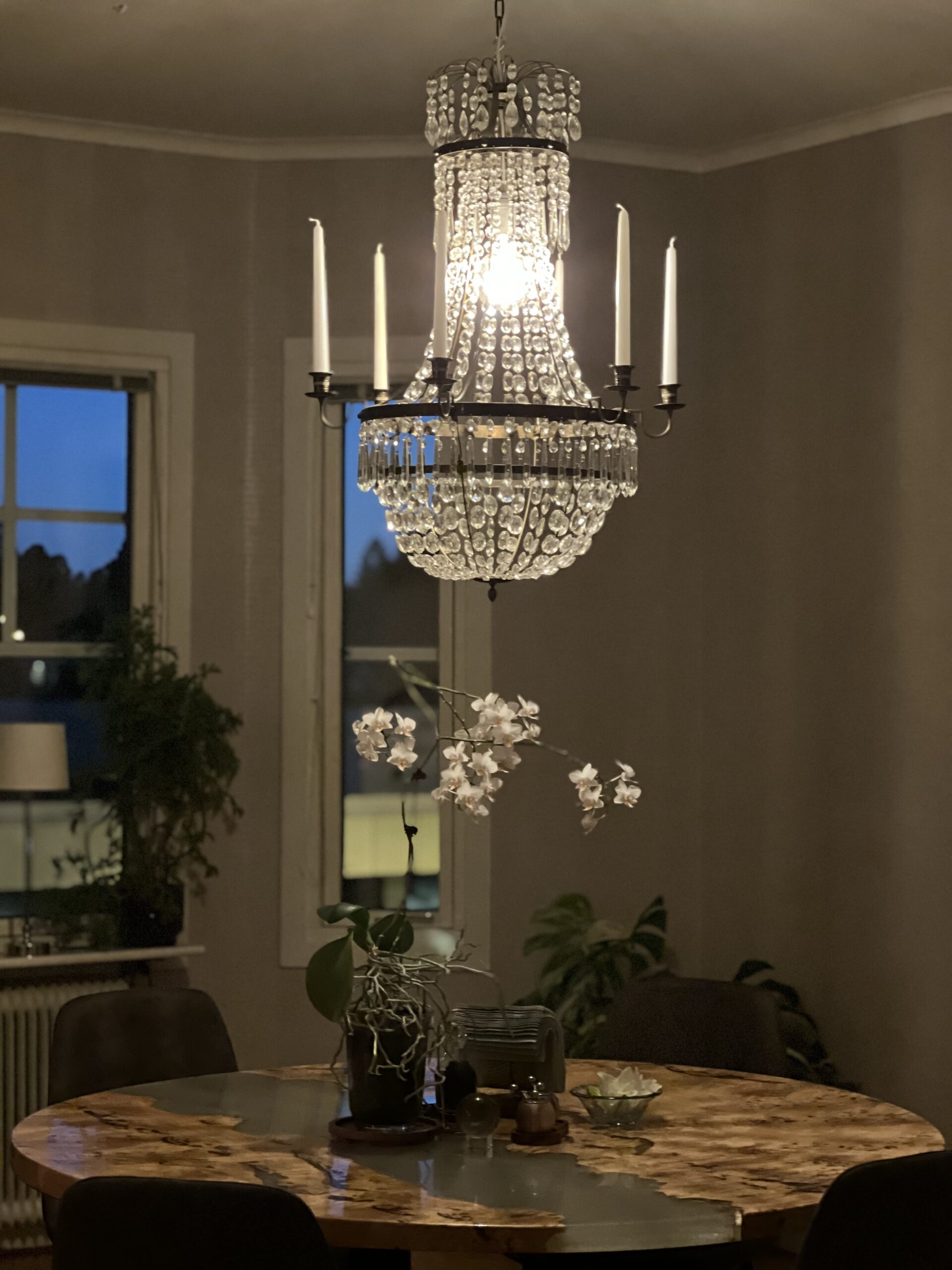 Sakta men säkert växer mitt hem fram under mina händer. Saker flyttar in som gör mig glad i själen och energin här hemma är magisk! Allting som finns här är saker jag verkligen VILL ha här. Jag rensar. Jag slänger. Jag är skoningslös med saker jag inte villhöver eller gillar. Saker som jag faktiskt behöver får såklart följa med, och det kanske inte alltid är exakt det jag vill ha, men då gör jag en mental notering av det och väntar tills pengar finns för att ersätta med det jag verkligen vill ha. I dag har jag tex köpt nya växter på Blomsterlandet som hade 50% rea på alla gröna växter. Guldkrukor på Erikshjälpen och jag har köpt ett vitrinskåp och ställt in alla mina glas. Nu fattas bara belysning.